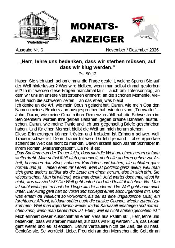 Alle Mitglieder bekommen den Monatsanzeiger zugesandt, er kann aber auch hier eingesehen werden.